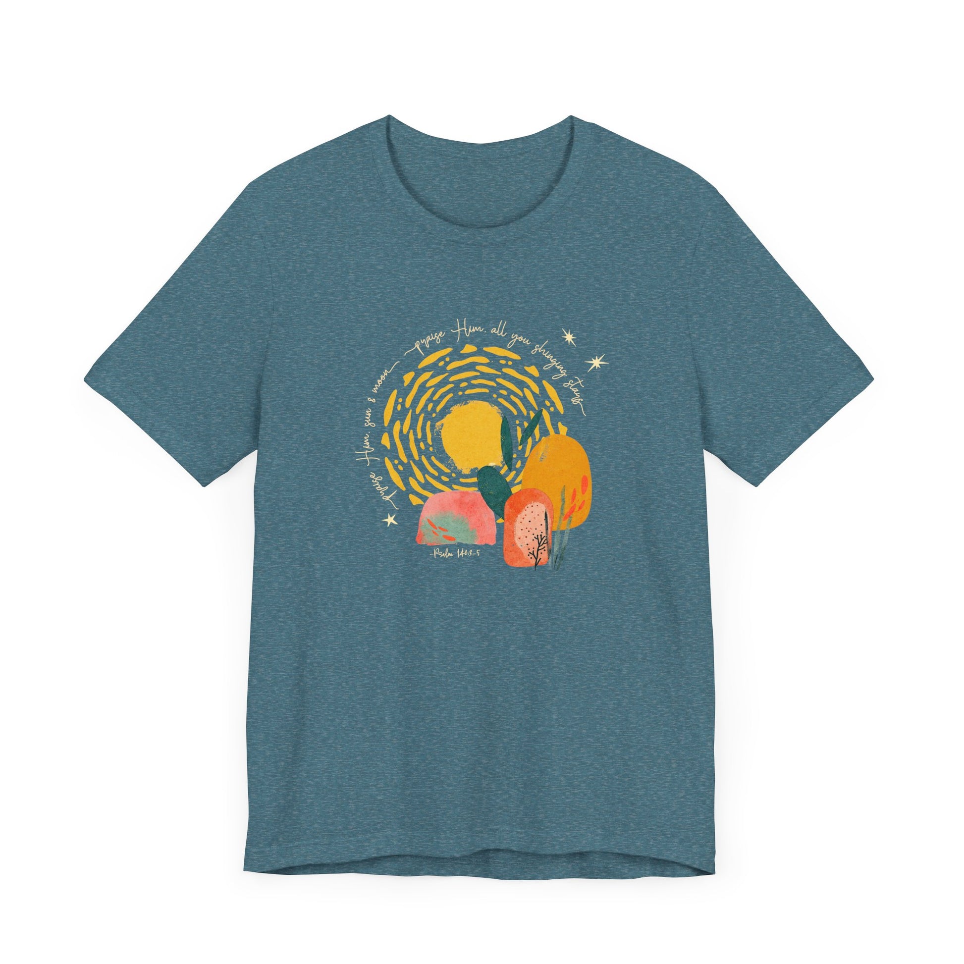 Praise Him Sun and Moon Shirt | Psalm 148:3-5 Christian Tee | Boho Nature Worship Shirt | The99.ink Faith Design | Bible Verse Shirt